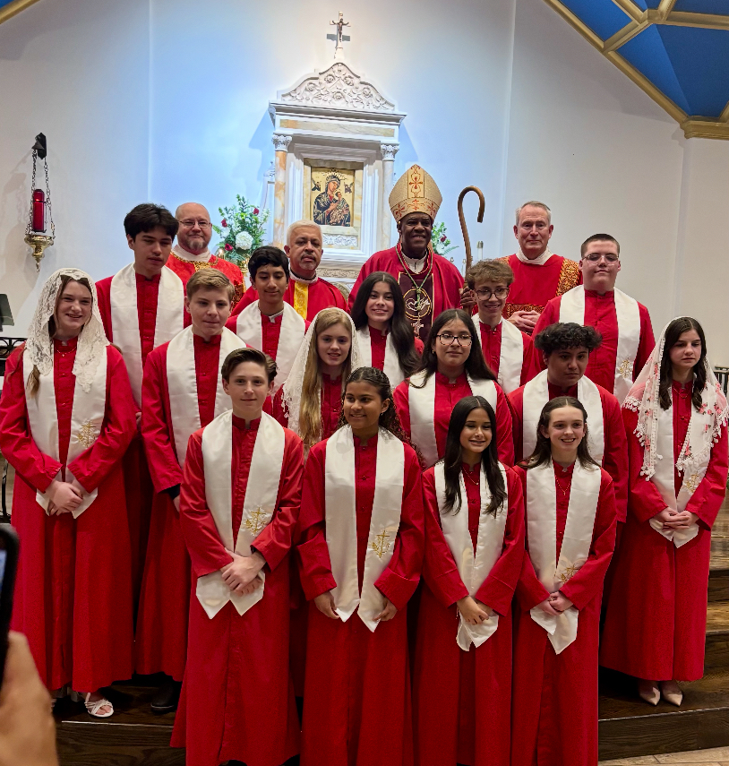 On Wednesday, Feb. 4, Bishop Fabre visited Our Lady of Perpetual Help Church, confirming 15 young people at the growing and vibrant parish. “I was happy to see the vibrancy and youth of this parish community. Father Orlando Serrano Ardila, administrator of the parish, has been accepted with immense joy and love by his parishioners. Over the past five years, Our Lady of Perpetual Help has been blessed with more and more children in the pews, who are involved in sharing messages at Sunday Mass. I felt very accepted and welcomed by them. I even met a family with nine children. Nine! They were living their faith; life is a beautiful thing that ought to be celebrated.”