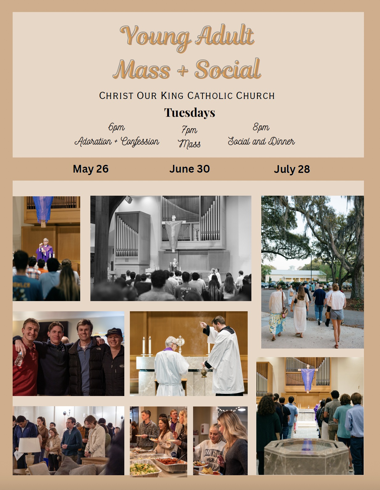 Are you a young adult between 18 and 35 looking for fellowship and growth in your faith? Come to the Young Adult Mass & social!